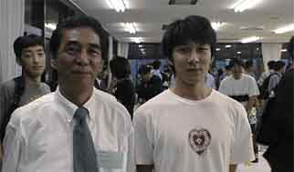 ゼロワンプロダクツの樋口社長と実習生の寺田さんと田野岡君(電子)です。