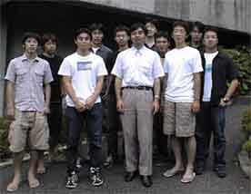 懇親会会場前での研究室の全体写真 |